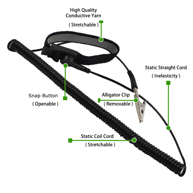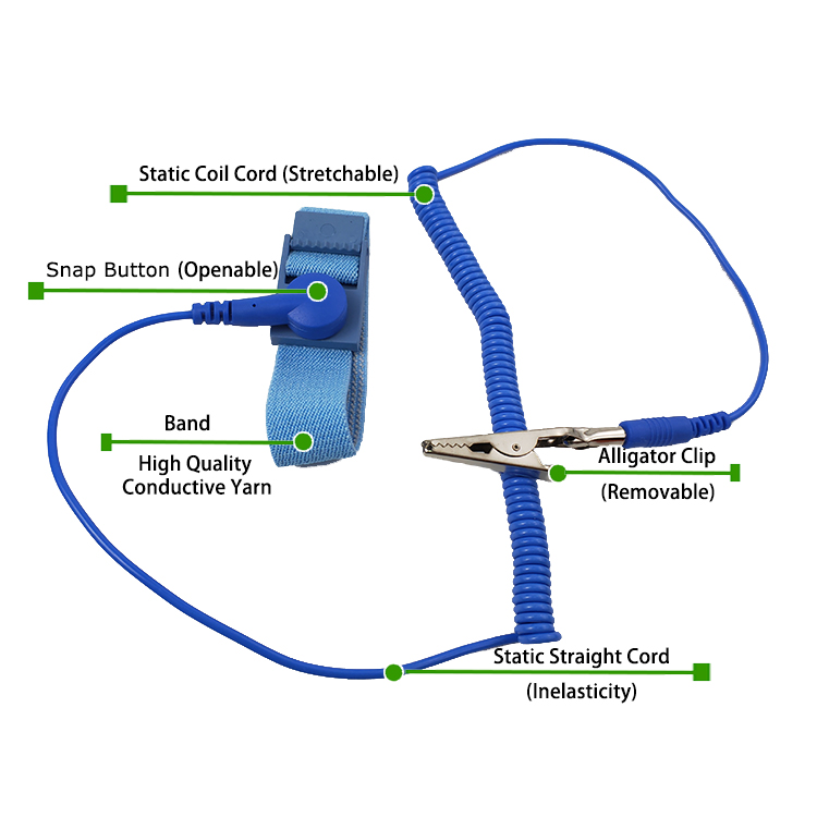 有線 抗静止リストストラップ 手首ストラップと接地ワイヤを介して、人間の静的電気を地球に効果的に輸出して、静的な電気が敏感な電子部品を損傷しないようにします。このプロセスは、安定した抵抗を通じて安全性と信頼性を保証します。