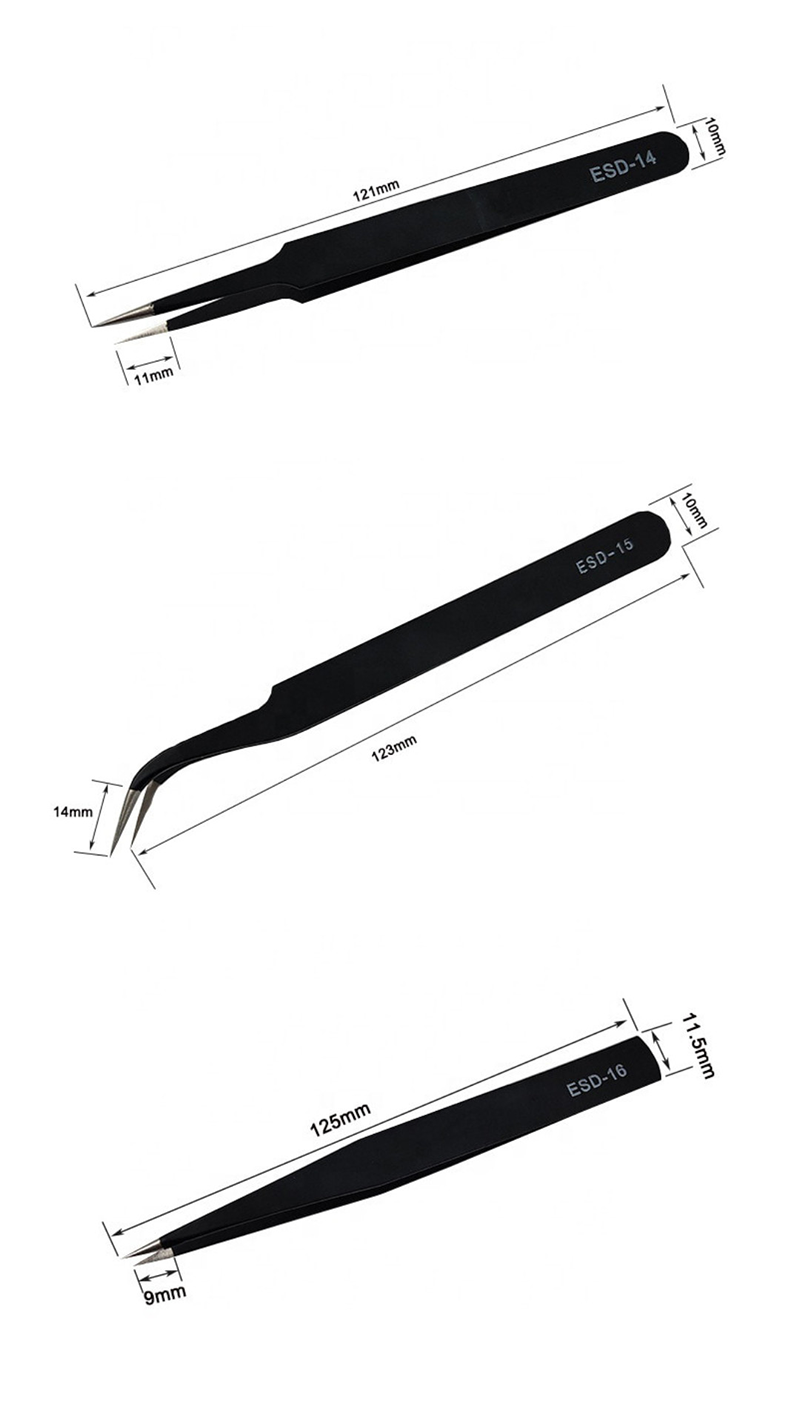 2。ESD-11(大):先端は長く、精密な電子部品の微細な操作に適しています。