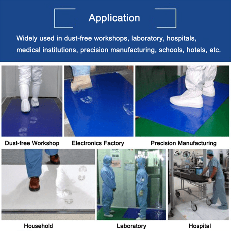 制御された環境:電子製造、製薬産業、半導体の生産など、粘着性マットは、ほこりや粒子の移動を効果的に減らし、生産環境の品質制御を改善できます。